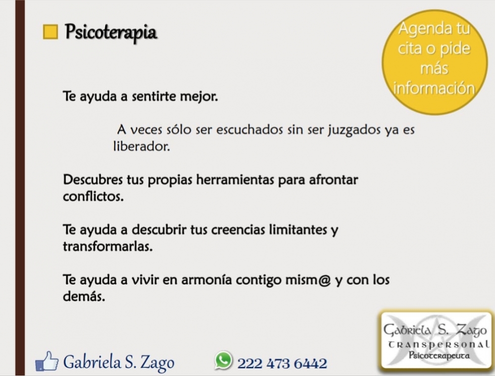Psicoterapia Transpersonal, Terapia de Barras de Access Consciousness, Terapia de Biomagnetismo médico, Constelación familiar individual, Armonización de Chakras, Lectura de Tarot Terapéutico, Terapia con GeometrÃa Sagrada